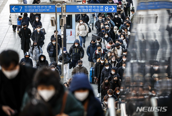 帰省先から戻ってきた人々で込み合うソウル駅(14/18)