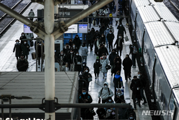 帰省先から戻ってきた人々で込み合うソウル駅(16/18)