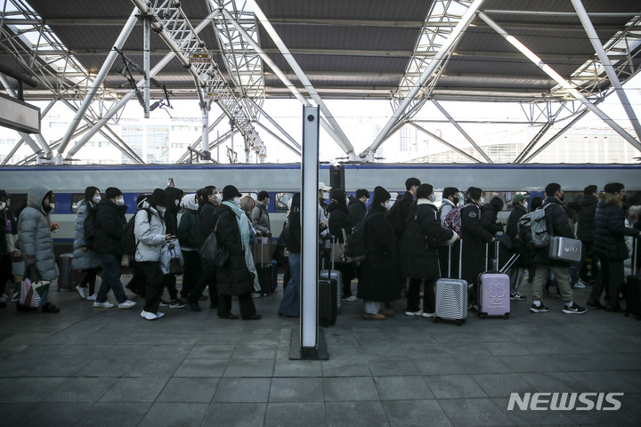 帰省先から戻ってきた人々で込み合うソウル駅(4/18)