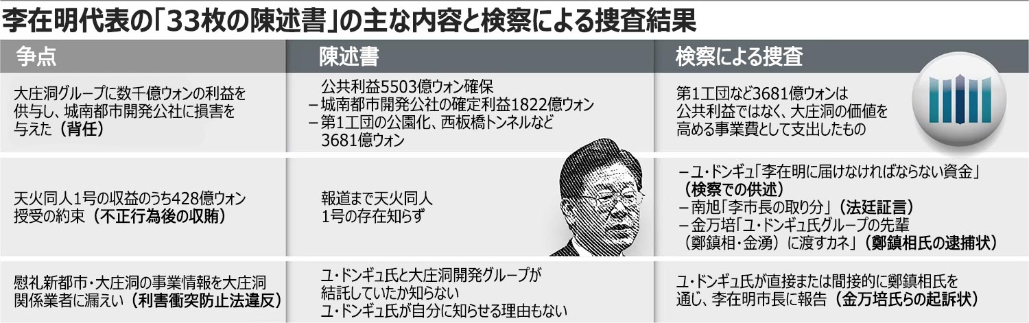 大庄洞事件で出頭した李在明代表、「33枚の陳述書」の3大争点とは(2/2)