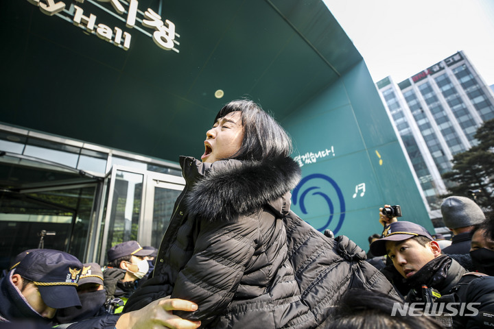 市庁侵入を試みる梨泰院雑踏事故犠牲者の遺族たち(12/17)