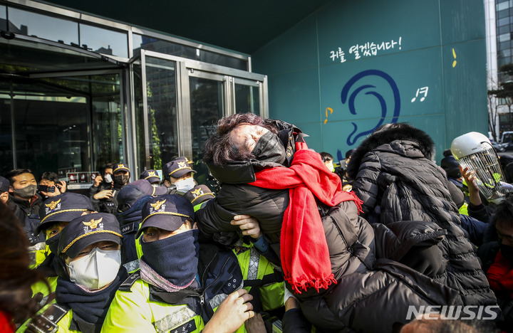市庁侵入を試みる梨泰院雑踏事故犠牲者の遺族たち(6/17)
