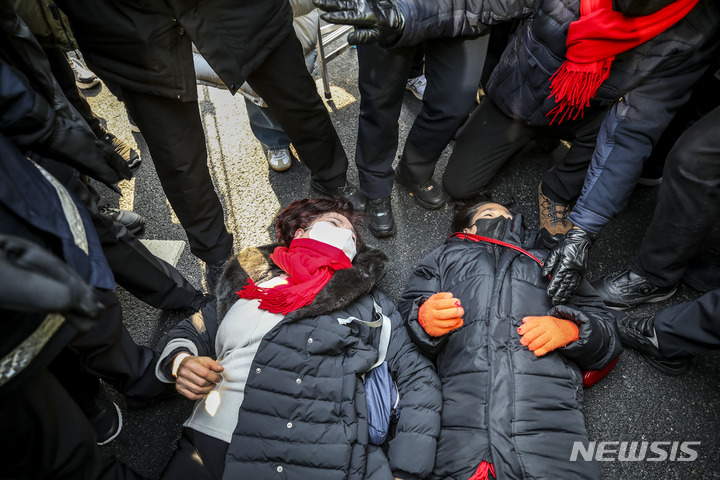 市庁侵入を試みる梨泰院雑踏事故犠牲者の遺族たち(7/17)