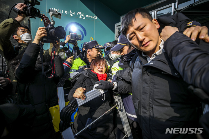 市庁侵入を試みる梨泰院雑踏事故犠牲者の遺族たち(10/17)