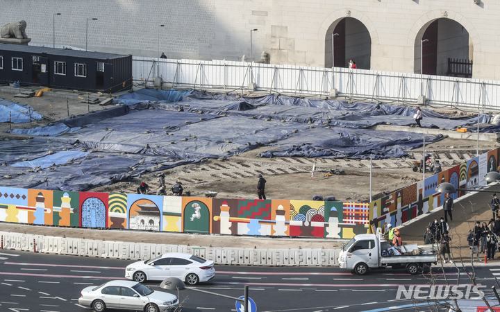 光化門前で見つかった日帝強占期の路面電車の線路跡(2/9)