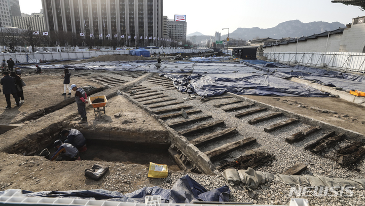 光化門前で見つかった日帝強占期の路面電車の線路跡(4/9)