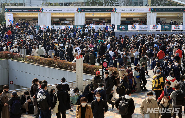 WBCグッズ購入のため並ぶ日本の野球ファン(3/12)