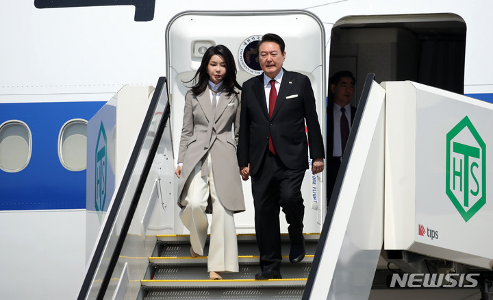 尹錫悦大統領夫妻が日本到着、出迎えの人たちとあいさつ(11/15)