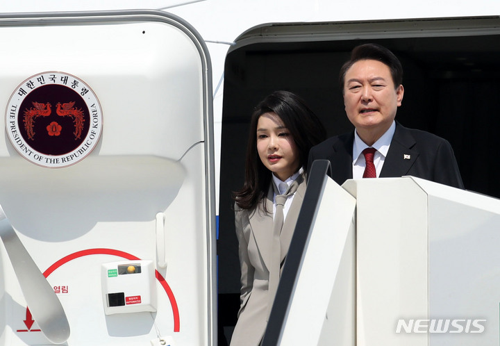尹錫悦大統領夫妻が日本到着、出迎えの人たちとあいさつ(14/15)