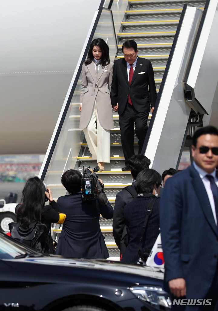 尹錫悦大統領夫妻が日本到着、出迎えの人たちとあいさつ(7/15)