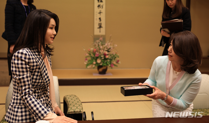 親睦を深める韓国の金建希大統領夫人と日本の岸田裕子夫人 /東京(12/21)