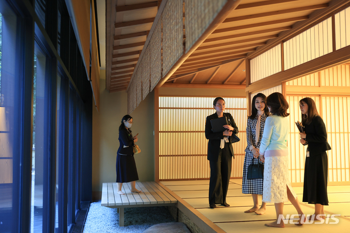 親睦を深める韓国の金建希大統領夫人と日本の岸田裕子夫人 /東京(6/21)