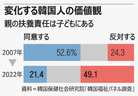 韓国人「親は子どもが面倒を見るべき」21%…15年間で半減(2/2)