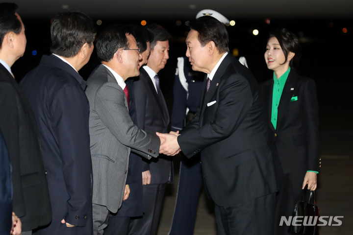 尹錫悦大統領夫妻、日本訪問を終えソウル空港到着(5/12)