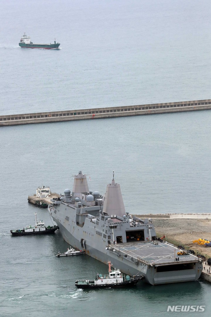 米ドック型輸送揚陸艦グリーン・ベイが釜山に初寄港(3/6)