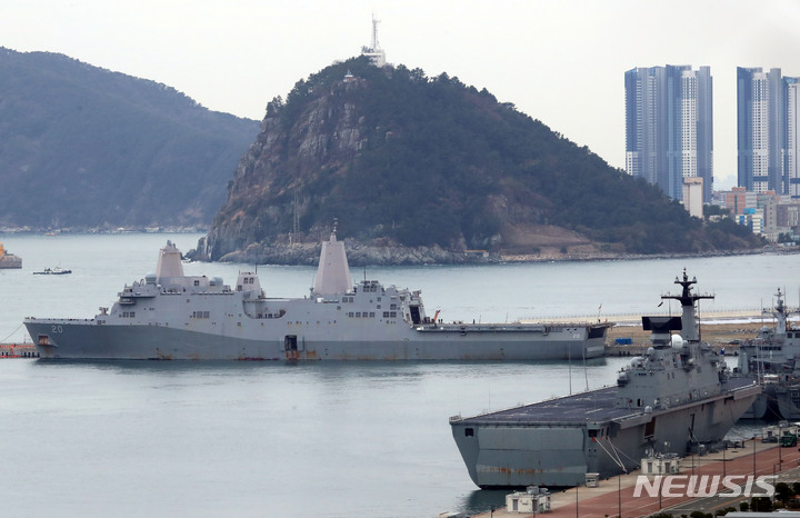 米ドック型輸送揚陸艦グリーン・ベイが釜山に初寄港(5/6)