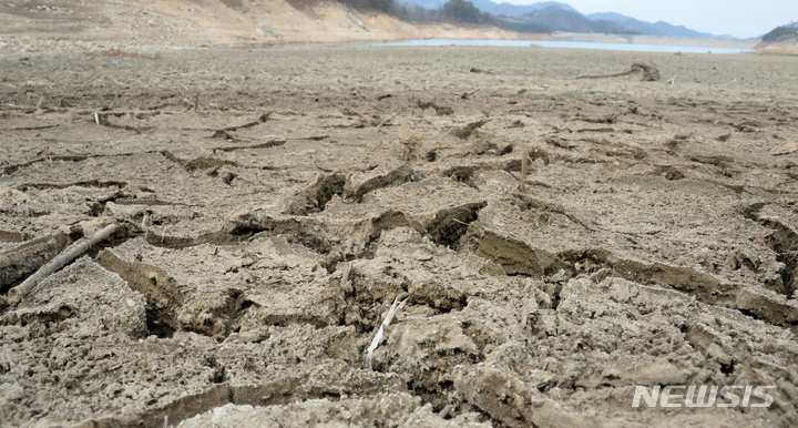 干ばつで底が見えてしまった竜潭ダムの上流 /全羅道(3/10)