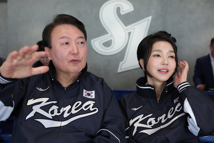 プロ野球開幕戦を観戦する韓国大統領夫妻(1/6)