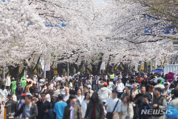 花見客でにぎわう汝矣島の桜並木 /ソウル(1/10)
