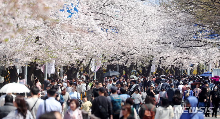 花見客でにぎわう汝矣島の桜並木 /ソウル(3/10)