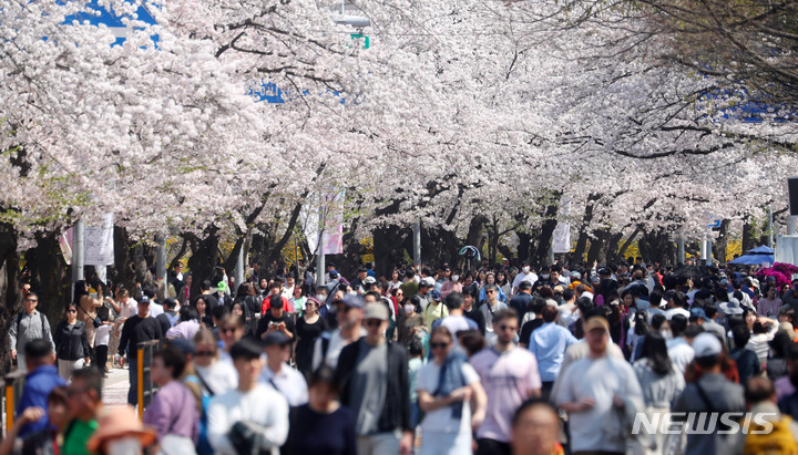 花見客でにぎわう汝矣島の桜並木 /ソウル(6/10)