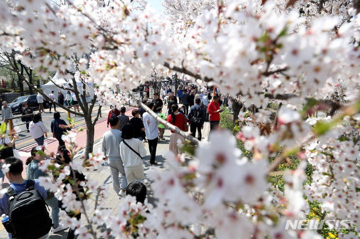 花見客でにぎわう汝矣島の桜並木 /ソウル(9/10)