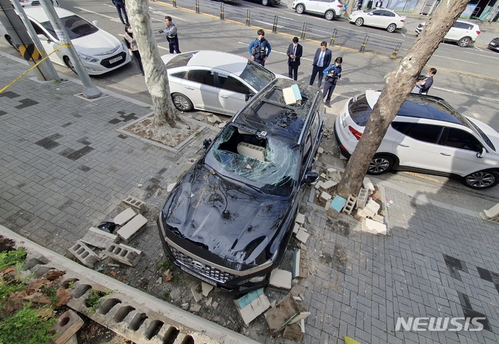 駐車場2階でバックの車、塀を突き破って転落 /大邱(1/3)