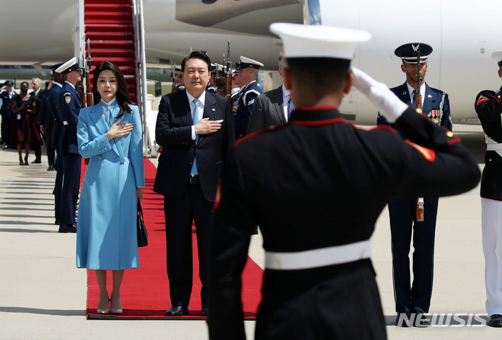 米国に到着し出迎えを受ける尹大統領夫妻(18/21)