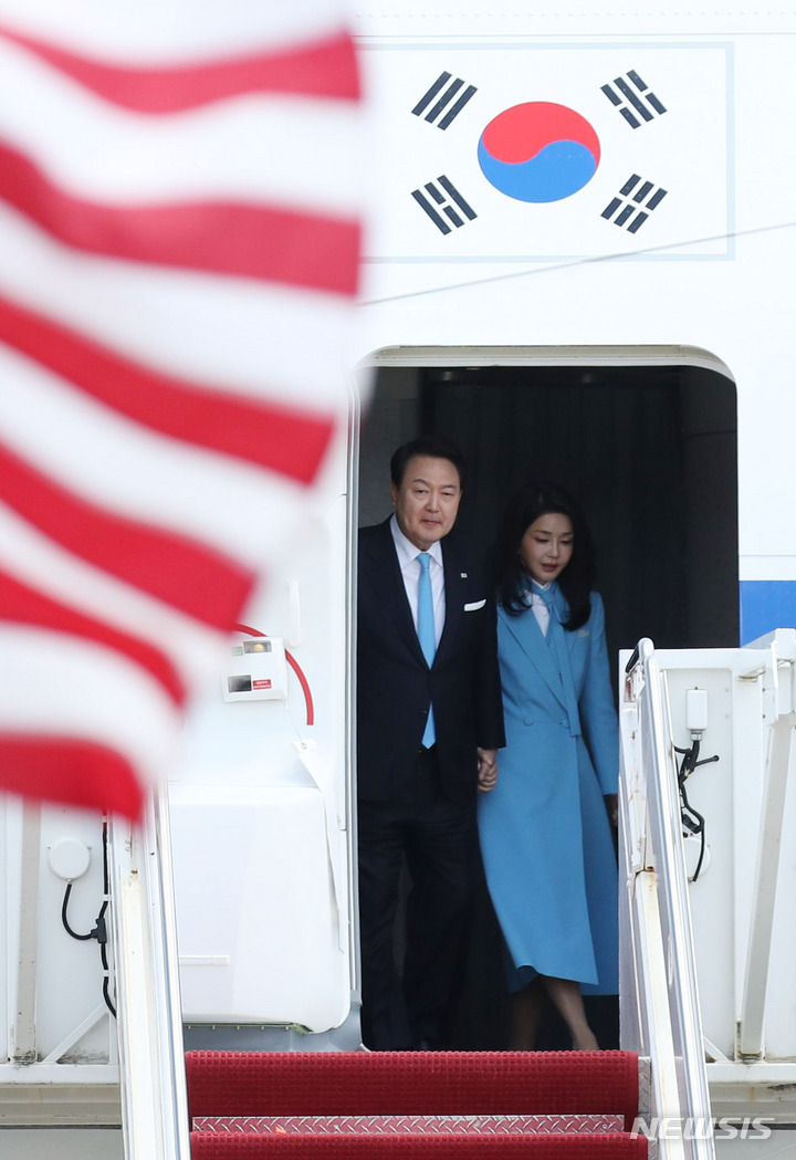 米国に到着し出迎えを受ける尹大統領夫妻(4/21)
