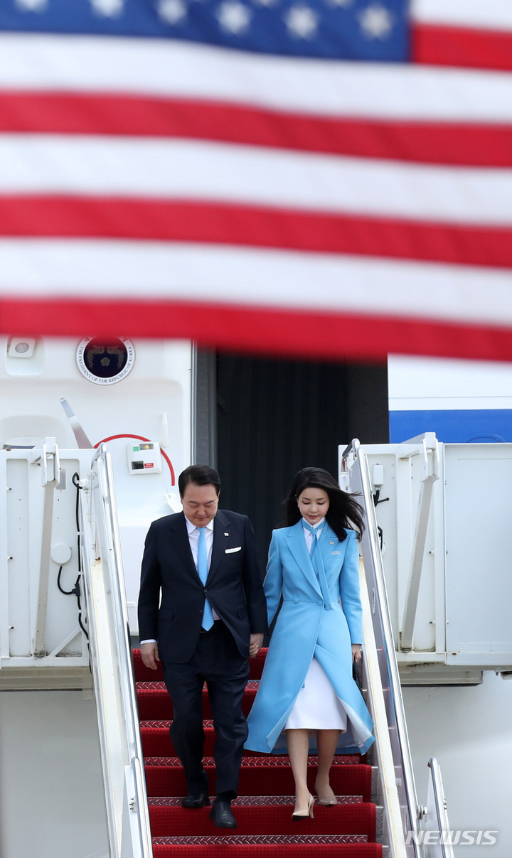 米国に到着し出迎えを受ける尹大統領夫妻(6/21)