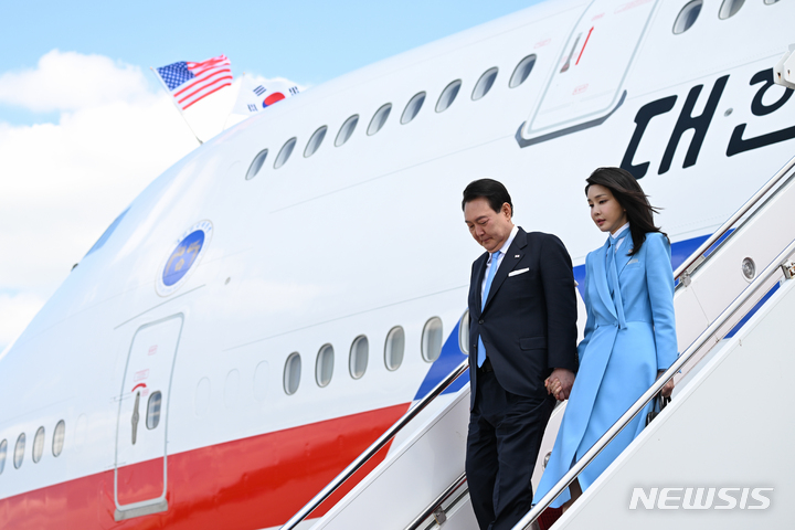 米国に到着し出迎えを受ける尹大統領夫妻(10/21)