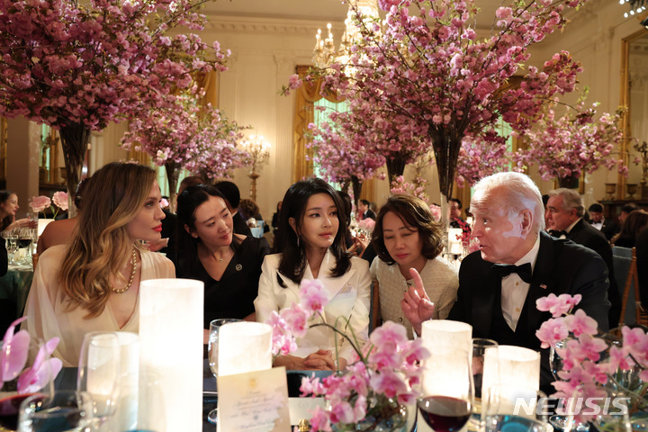 アンジェリーナ・ジョリーとあいさつする金建希夫人(2/4)