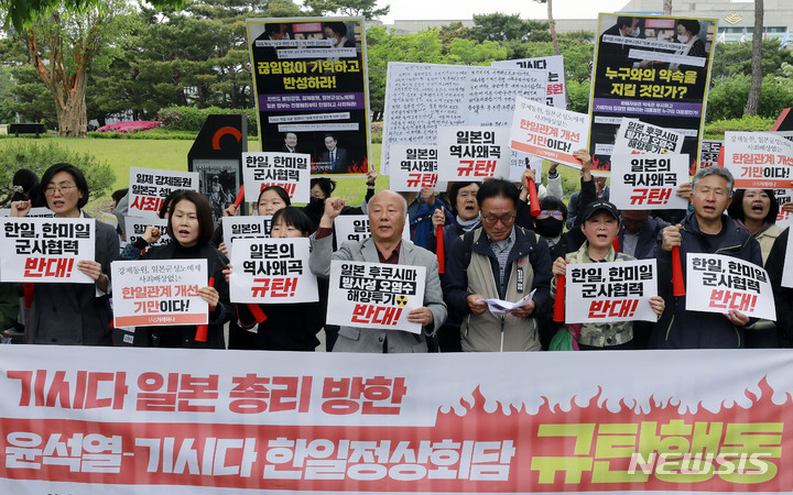 岸田首相訪韓で同時に行われた歓迎集会と糾弾集会(15/15)