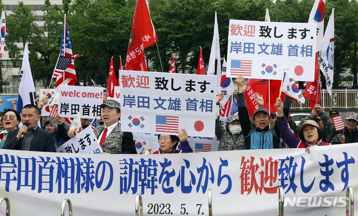 岸田首相訪韓で同時に行われた歓迎集会と糾弾集会(5/15)