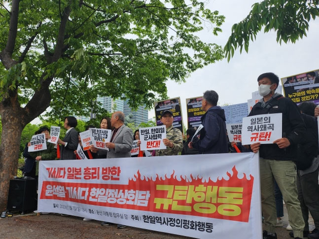 「反日扇動やめろ」「屈従外交するな」…岸田首相来韓で賛成派・反対派のデモ隊が対峙 /ソウル(1/2)