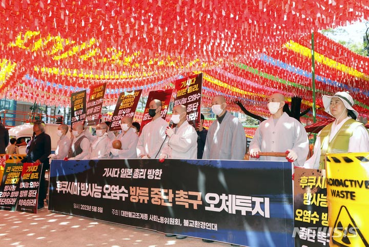 「日本の放射能汚染水放流はいけない」 僧侶が五体投地行進(12/12)