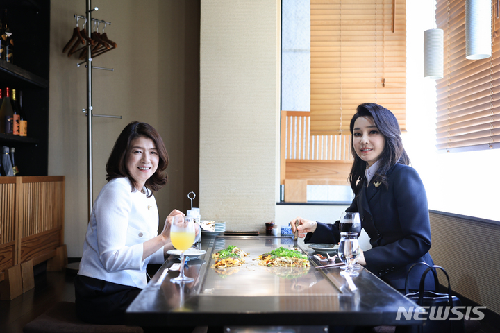 金建希夫人と岸田裕子夫人 お好み焼き昼食会 /広島(8/8)