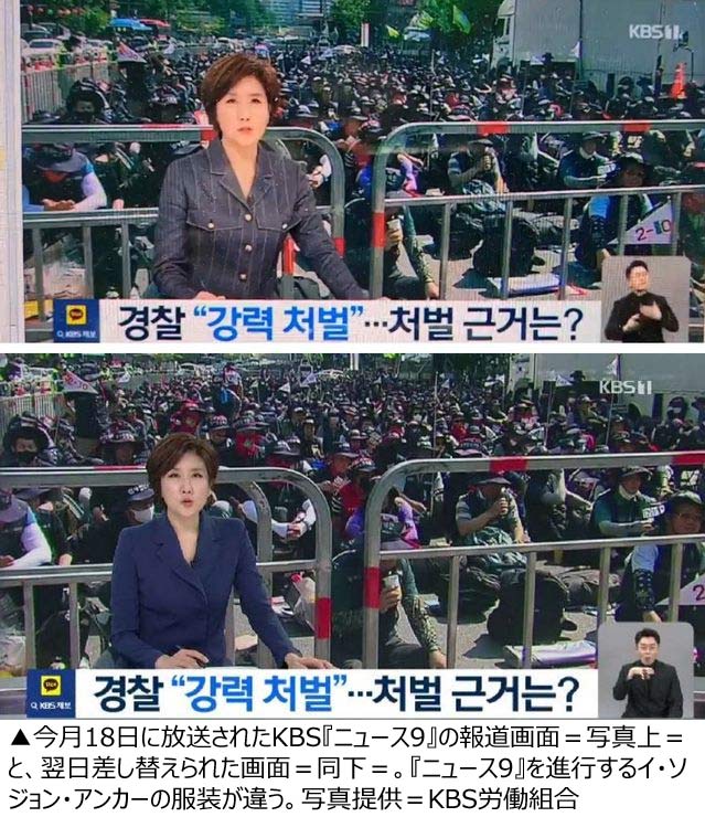 歪曲報道指摘された韓国公共放送局KBS、翌日こっそり画面差し替え…アンカーは着替えてコメント修正(2/2)
