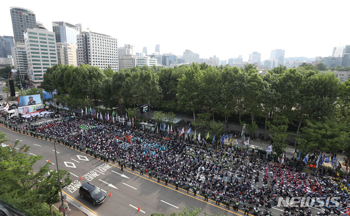 世宗大路をぎっしり埋めた民主労総(4/11)