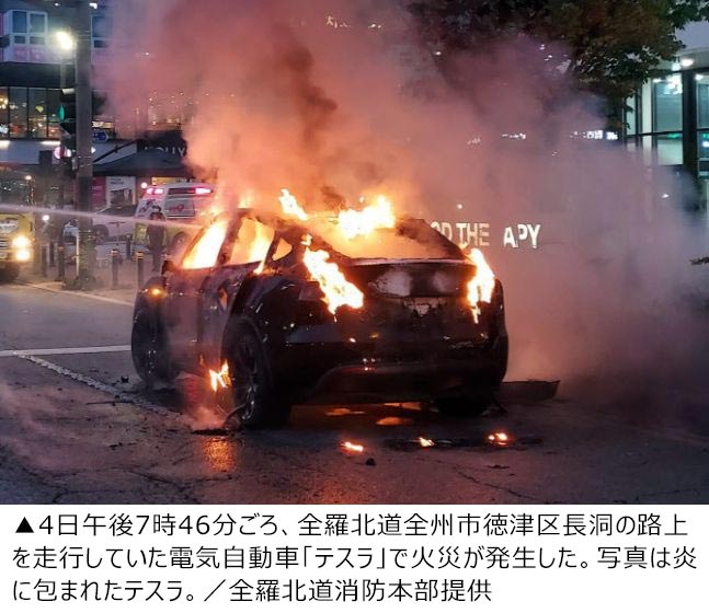 走行中のテスラが炎上…ドライバー「突然煙が出た」/全州(2/2)