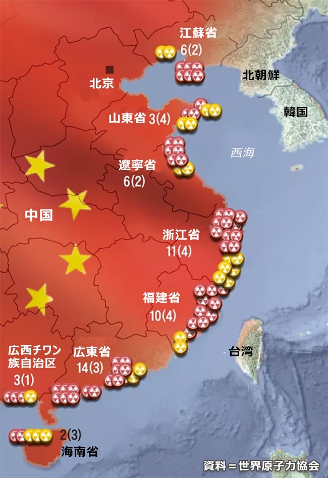原発を増やす中国、大半は韓半島に近接する沿海部に…近く仏を抜き世界2位に浮上(2/2)