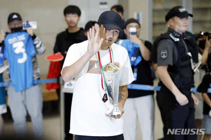 セリエA最優秀ディフェンダーのトロフィーを持って帰国したキム・ミンジェ(8/8)