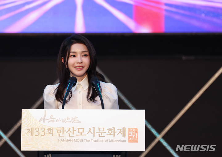 金建希さん、韓山カラムシ文化祭開幕式で祝辞(1/8)