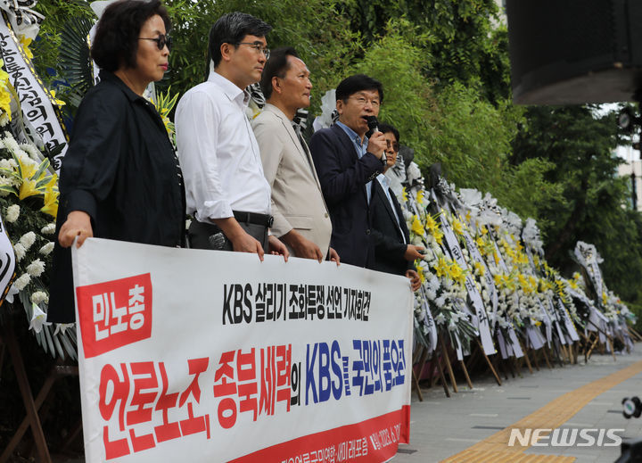 KBS前に並べられた葬儀用花輪…公営放送正常化求める(7/8)