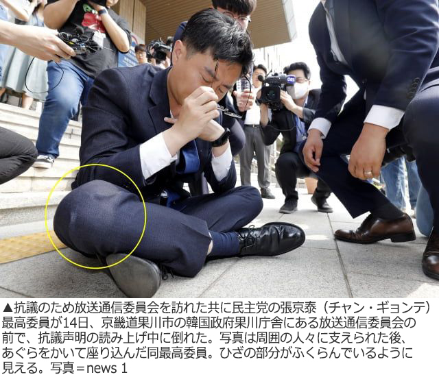 「貧血」で倒れた共に民主・張京泰議員のひざにプロテクター!? 韓国与党幹部が疑惑に言及 (2/2)