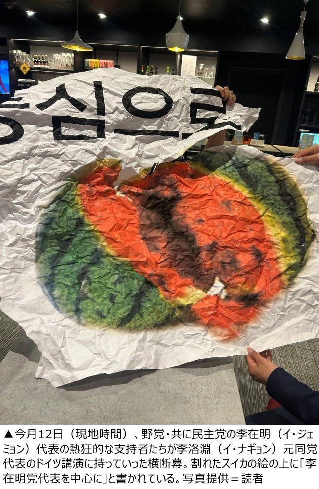 独ベルリン自由大学講義室に割れたスイカの横断幕、共に民主・李在明支持者らが乱入騒ぎ(2/2)