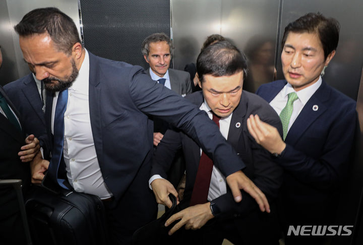 来韓したIAEA事務局長、激しい糾弾デモで到着ロビー通れず…やっとのことで金浦空港脱出