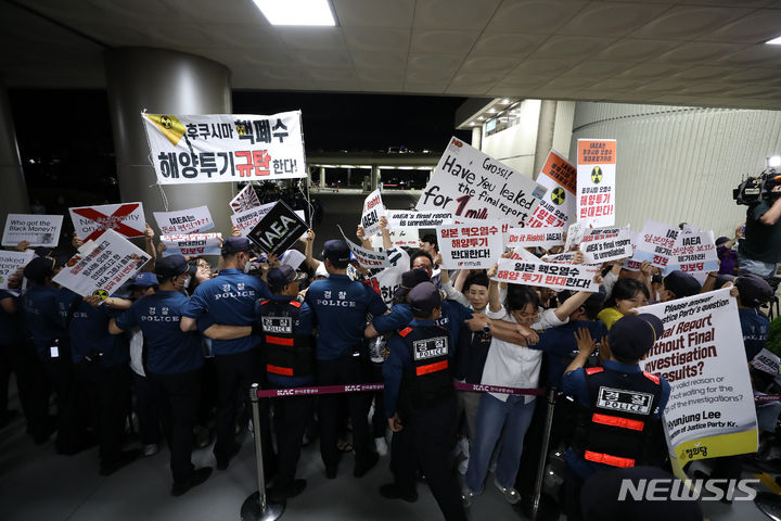 来韓したIAEA事務局長、激しい糾弾デモで到着ロビー通れず…やっとのことで金浦空港脱出