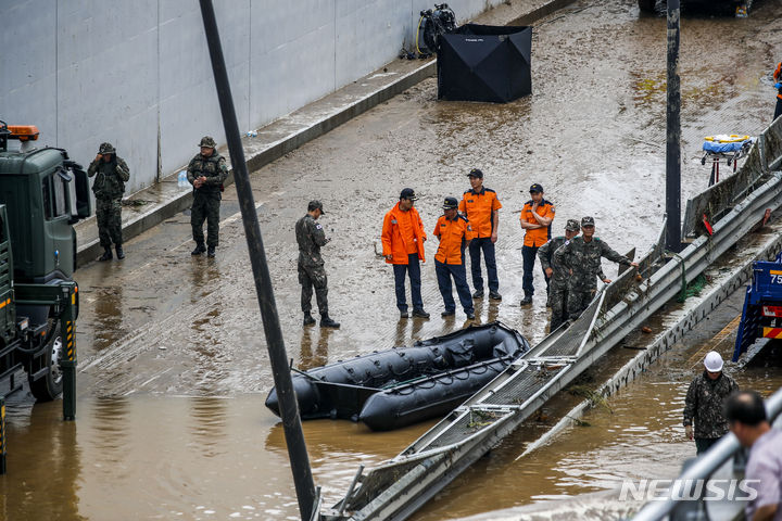 韓国豪雨:水没した地下道で行方不明者の捜索活動 /忠清北道(13/24)