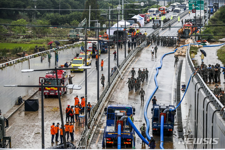 韓国豪雨:水没した地下道で行方不明者の捜索活動 /忠清北道(15/24)